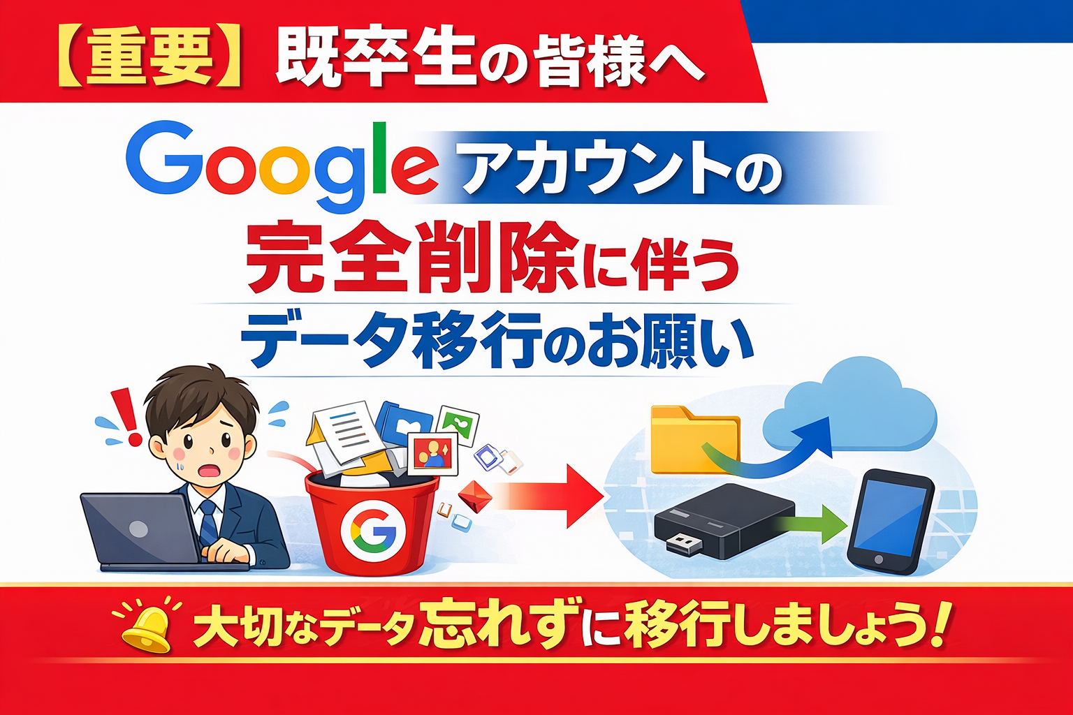 【重要】既卒生の皆様へ:Googleアカウントの完全削除に伴うデータ移行のお願い