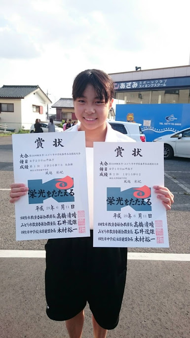 本校1年生 風越さん 第34回桐生市・みどり市中学校春季水泳競技大会に出場