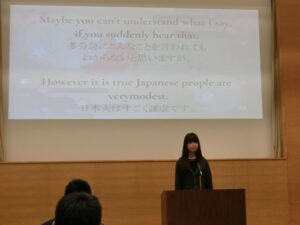 本校では、7月に英語暗唱コンテストと3月に英語スピーチコンテストを行っています。
