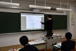 1時間目数学プロジェクターに投影した問題にペンで書き込みながら授業を進めていました。