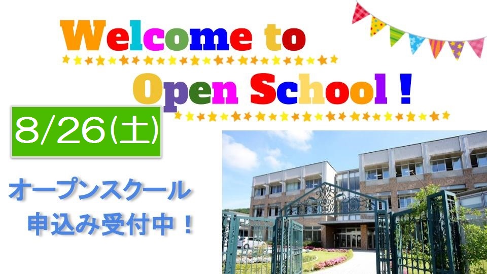 8/26(土)に第2回オープンスクールを実施します。 8:30 受付開始 9:00 オープンスクール開始 ◯学校紹介 ◯...