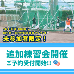 みなさん こんにちは! 桐生第一中学校野球部の練習会につきまして ありがたいことに、お問い合わせを多数いただき 追加で ...