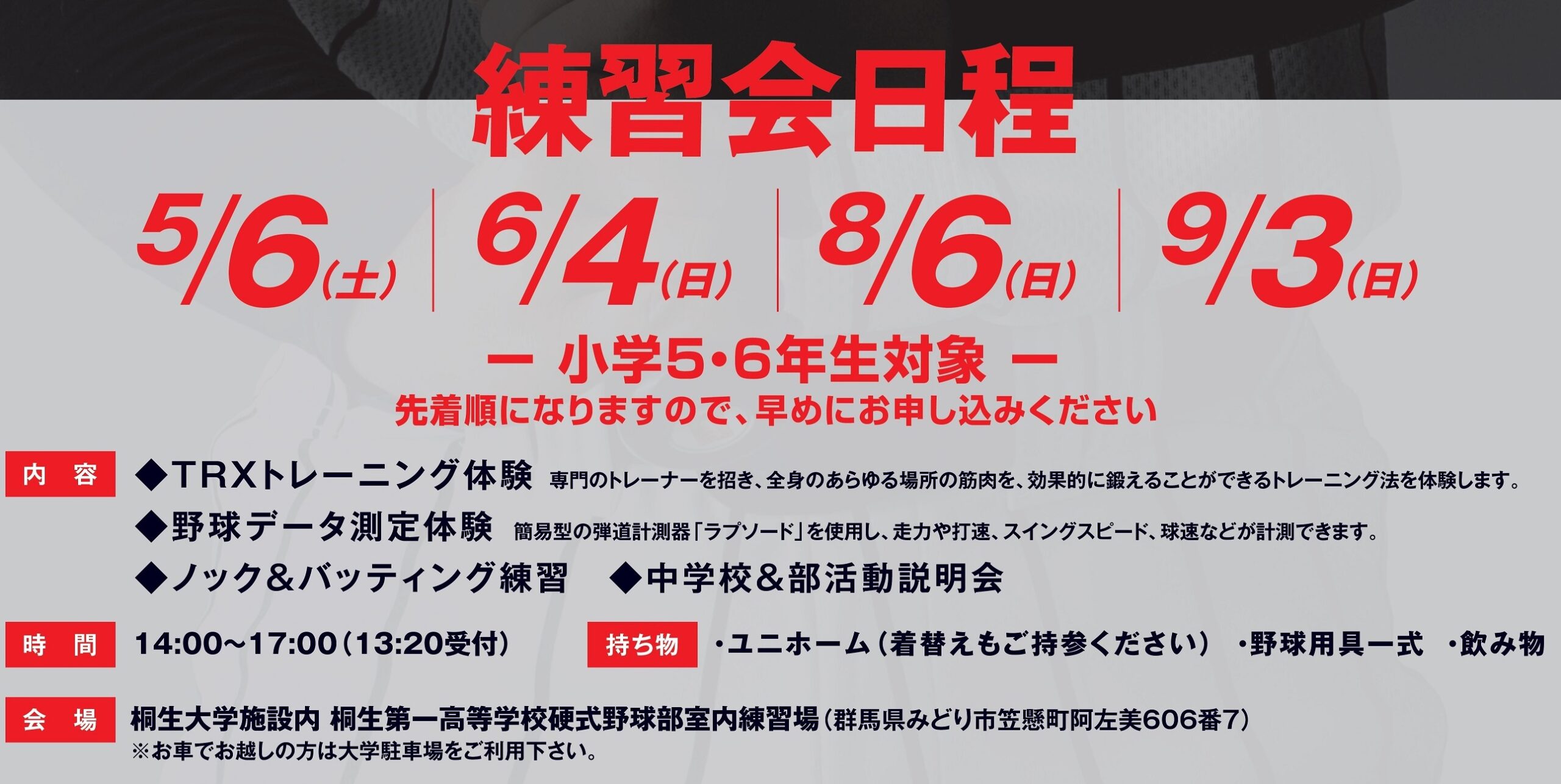 この度、桐生第一高等学校野球部強化の一環として中学軟式野球部を創部することとなりました。 中高一貫校としてさらなる成長を...