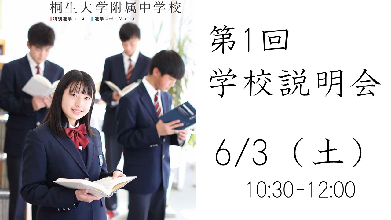 第1回学校説明会を6月3日(土)に実施します。 10:00 受付開始 10:30 説明開始 ・本校の学び ...
