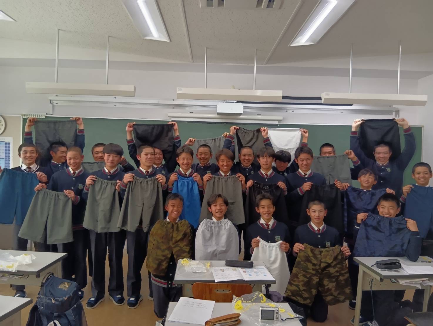 12月2,3日 2年生の家庭科を覗くと被服実習を終えてのハーフパンツ完成お披露目会をしていました。 2年の生徒の皆さんは...