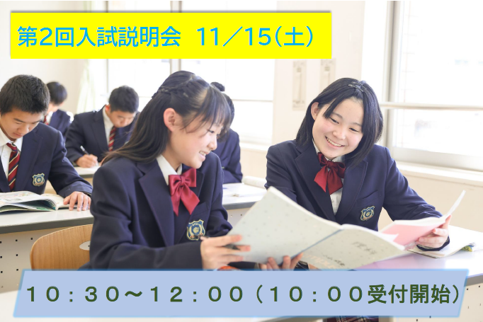 11月15日(土)入試説明会を開催します。 開催時間:10:30~12:00(10:00受付開始) 推薦入試・一般入試の...