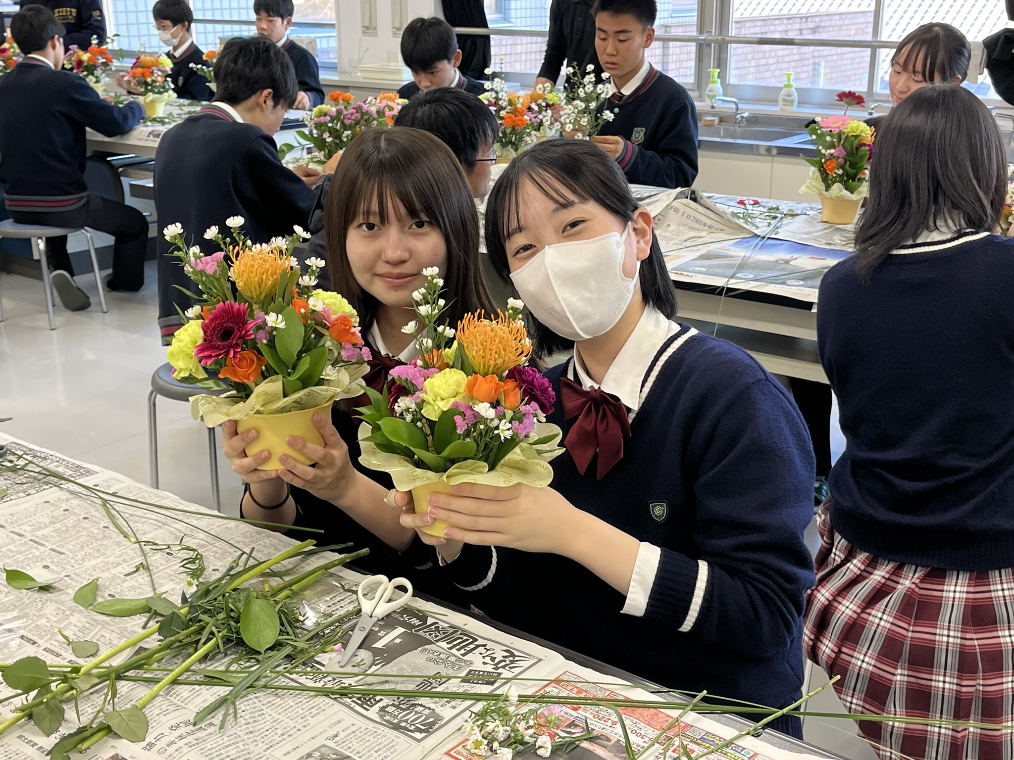 11月11日(水)中学3年生32名が家庭科のフラワーアレンジメント実習を行いました。 講師は(株)花のスズラン様です。 ...