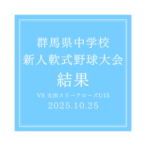 ◀︎ 10月25日(土) ▶︎ 令和7年度群馬県中学校新人大会 第48回軟式野球大会 決勝 vs 太田スリーアローズU1...