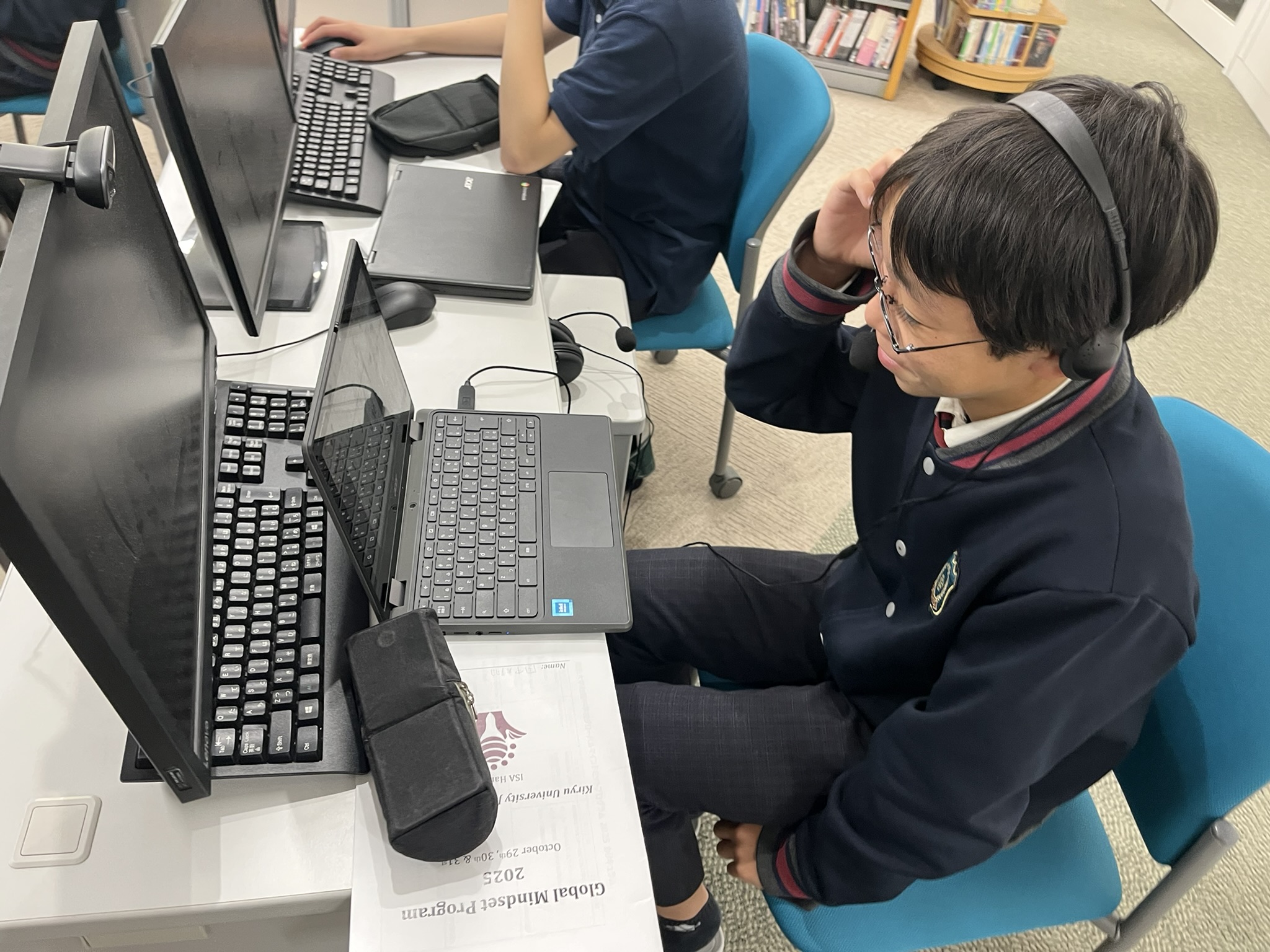 10月23日 3年生の英語を覗くとオンライン英会話の授業をしていました。 3年の生徒の皆さんは9月から計10回オンライン...