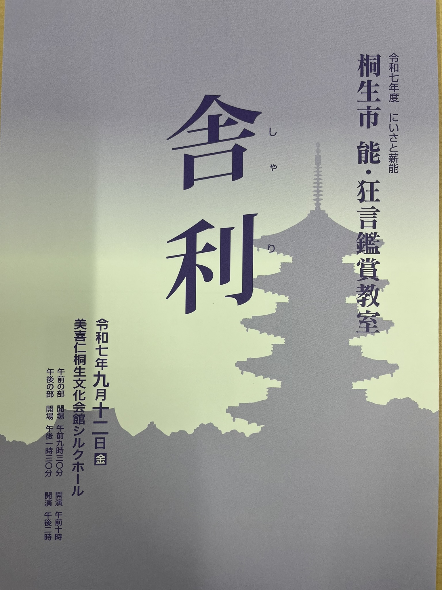9月12日(金) 桐生市能・狂言鑑賞教室が行われました。 こちらのイベントは二年に一度 桐生市の中学2,3年生を対象に行...
