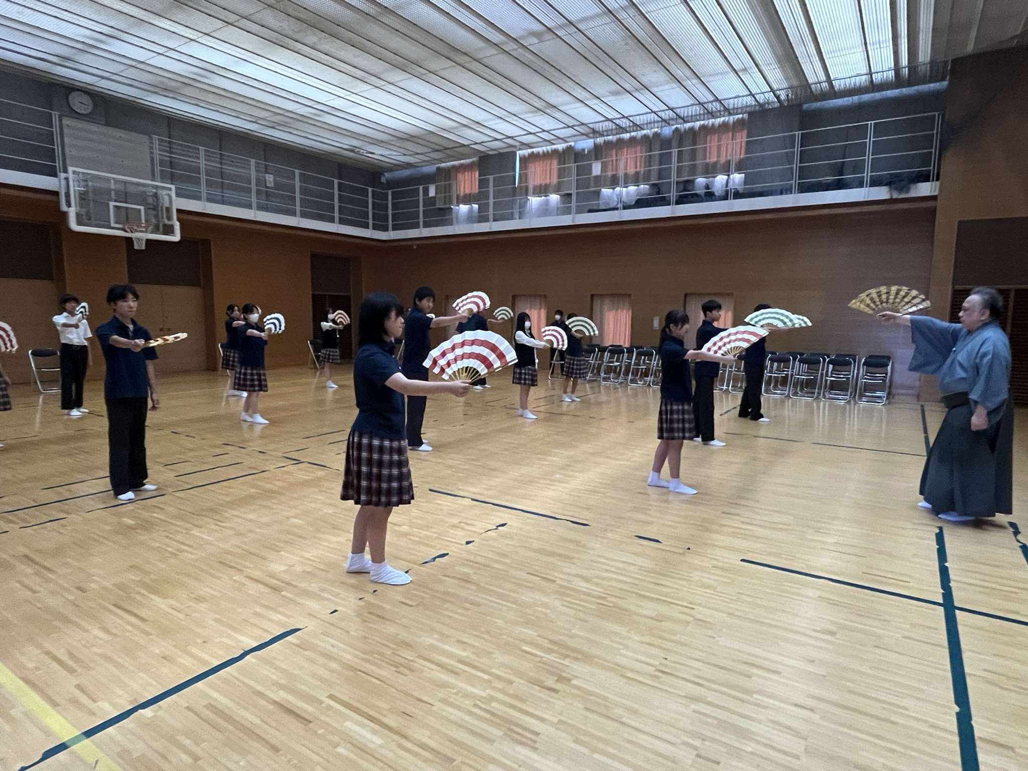 9月17日(水) 2,3年生の総合を覗くと能の授業をしていました。 2,3年の生徒の皆さんは11月に行われる学習発表会に...