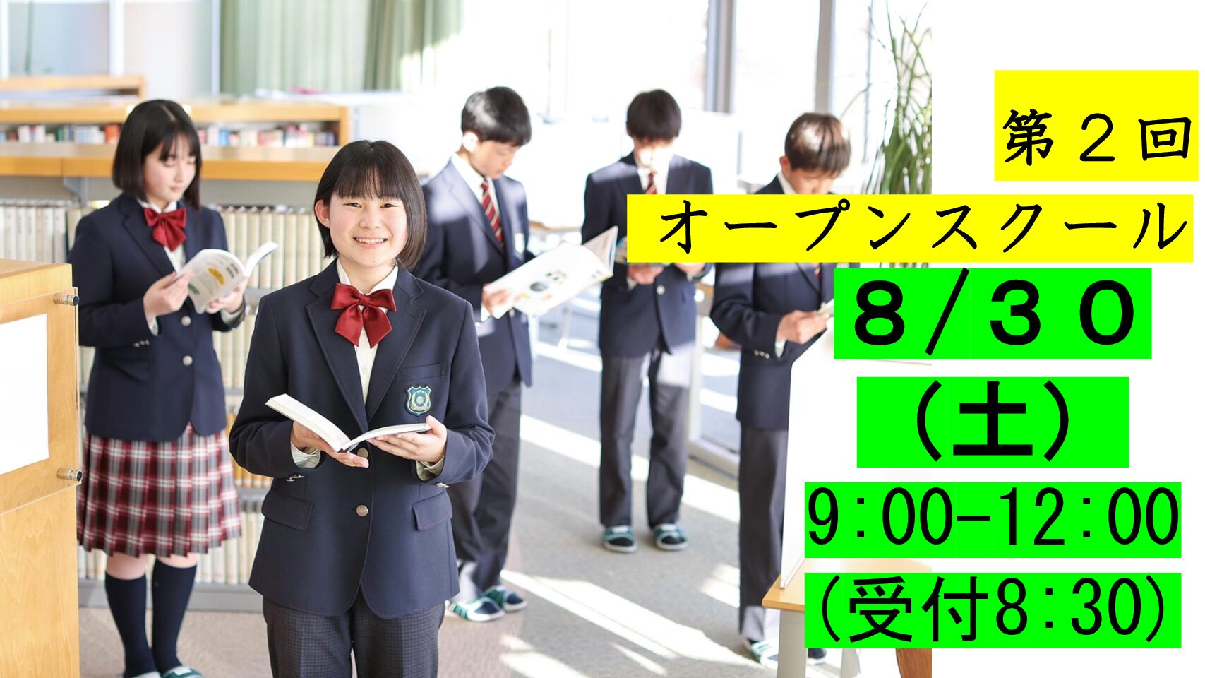 8/30(土)に第2回オープンスクールを実施します。 8:30 受付開始 9:00 オープンスクール開始 ◯学校紹介 ◯...