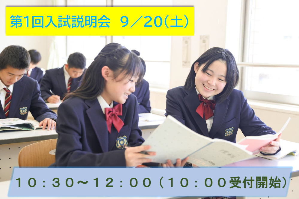 9月20日(土)入試説明会を開催します。 開催時間:10:30~12:00(10:00受付開始) 推薦入試・一般入試のポ...