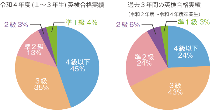 英検取得に向けてサポートも充実! (令和2年度~令和4年度卒業生)