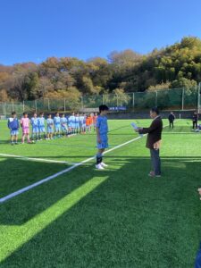 翌日の12月1日(日)はG1決勝戦。昨日に続き空は澄み渡りとても気持ちの良い朝を迎えました。決勝の相手は、AVS群馬エヴォリスタU-15さん。前半に先制され0-1で折り返し。後半に入ってからは、勝利へのこだわりを強く感じることのできるプレーでしたが、ゴールネットを揺らすことができませんでした。