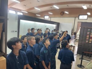 7月16日(水)中学2年生34名が、家庭科の衣生活分野の実地学習として、桐生織物記念館を訪れて見学・体験をしてきました。