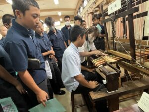 千三百年の時を重ねた地元桐生織物の歴史を学び、代表生徒は手織体験も行うことができました。