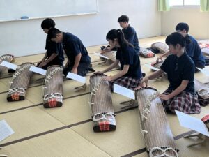 9月10日 1,2年生の音楽を覗くと箏の授業をしていました。