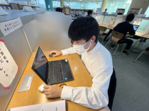 10月23日 3年生の英語を覗くとオンライン英会話の授業をしていました。