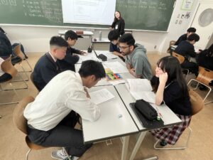 また、自分たちの学校の好きなところ、日本と留学生の国の学校生活の違いについてディスカッションしました。