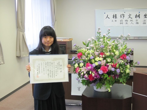髙橋由侑奈さん 人権作文コンテスト 桐生協議会長賞受賞