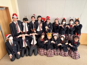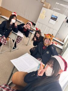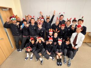 生徒達はそれぞれクリスマス仕様の仮装をして楽しく歌いました!!