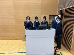 校長先生のお話の中で、QUEST CUP2026 予選結果が発表され、来週から行われる全国大会に出場するチームが発表されました。