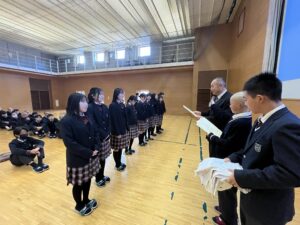 2月6日(金) 2月の生徒朝礼を行いました。