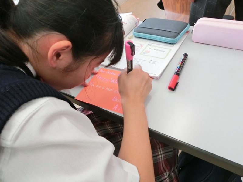 英語授業 1st grade~Let’s make Greeting Cards