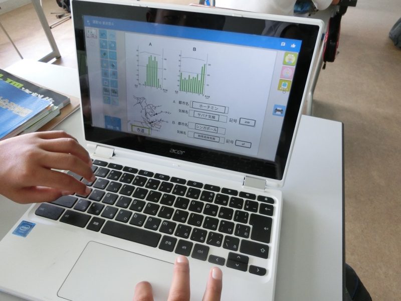 cromebookで生徒たちは課題を行い提出。