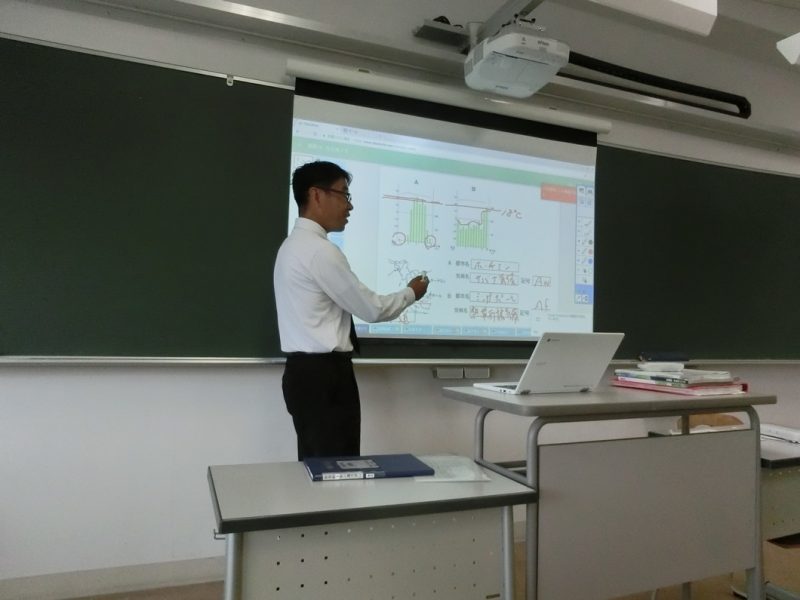 プロジェクターで投影して、生徒たちと確認していきました。