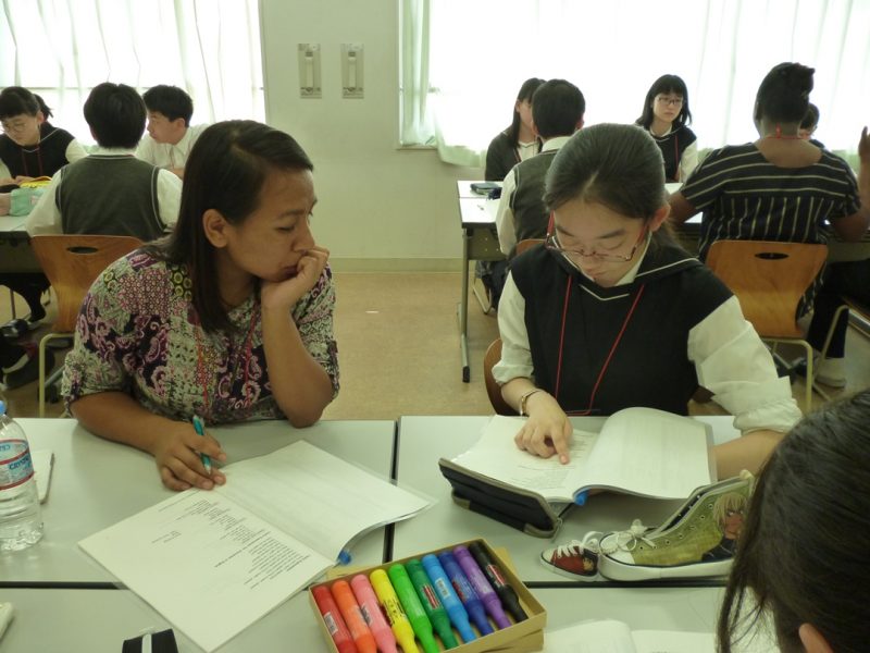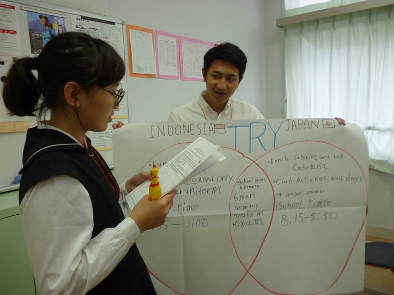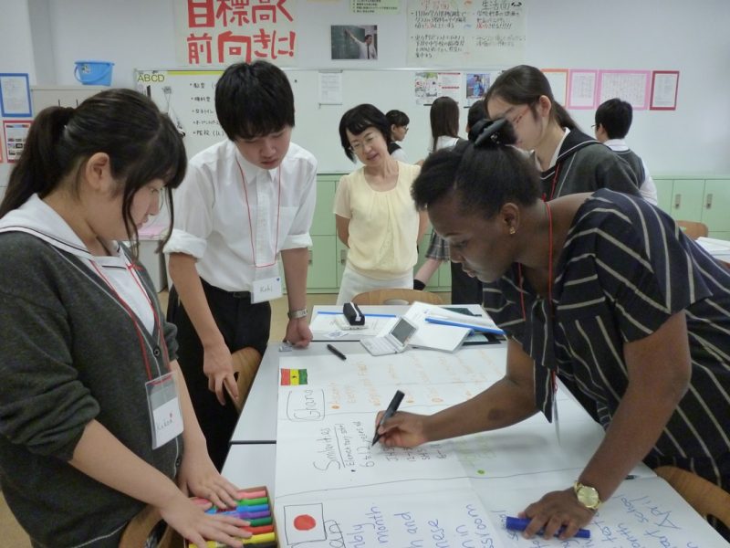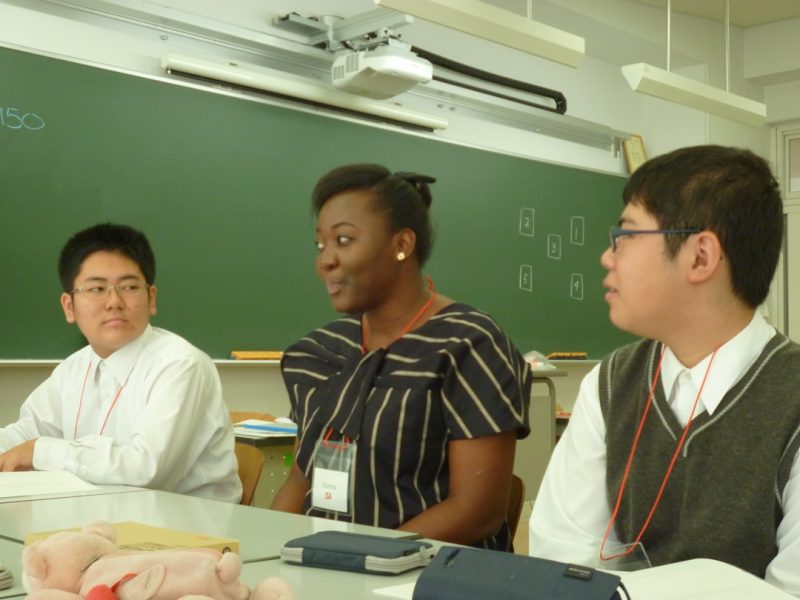 本校では留学生とさまざまなテーマで議論して発表する教育プログラムを実施しています。