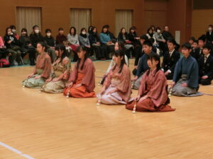 2月15日(金)学校開放日に、2,3年生が能の発表会を行いました。