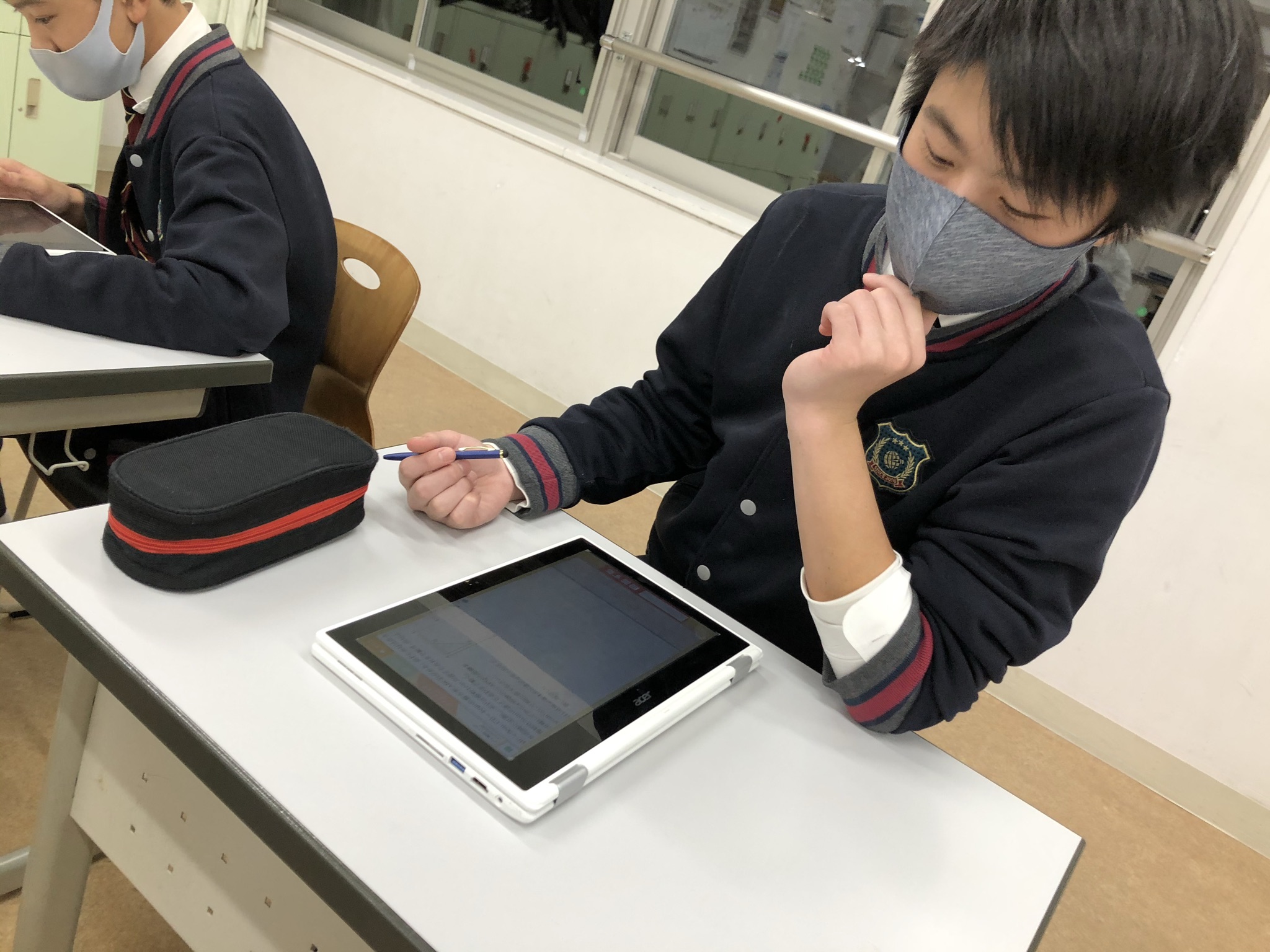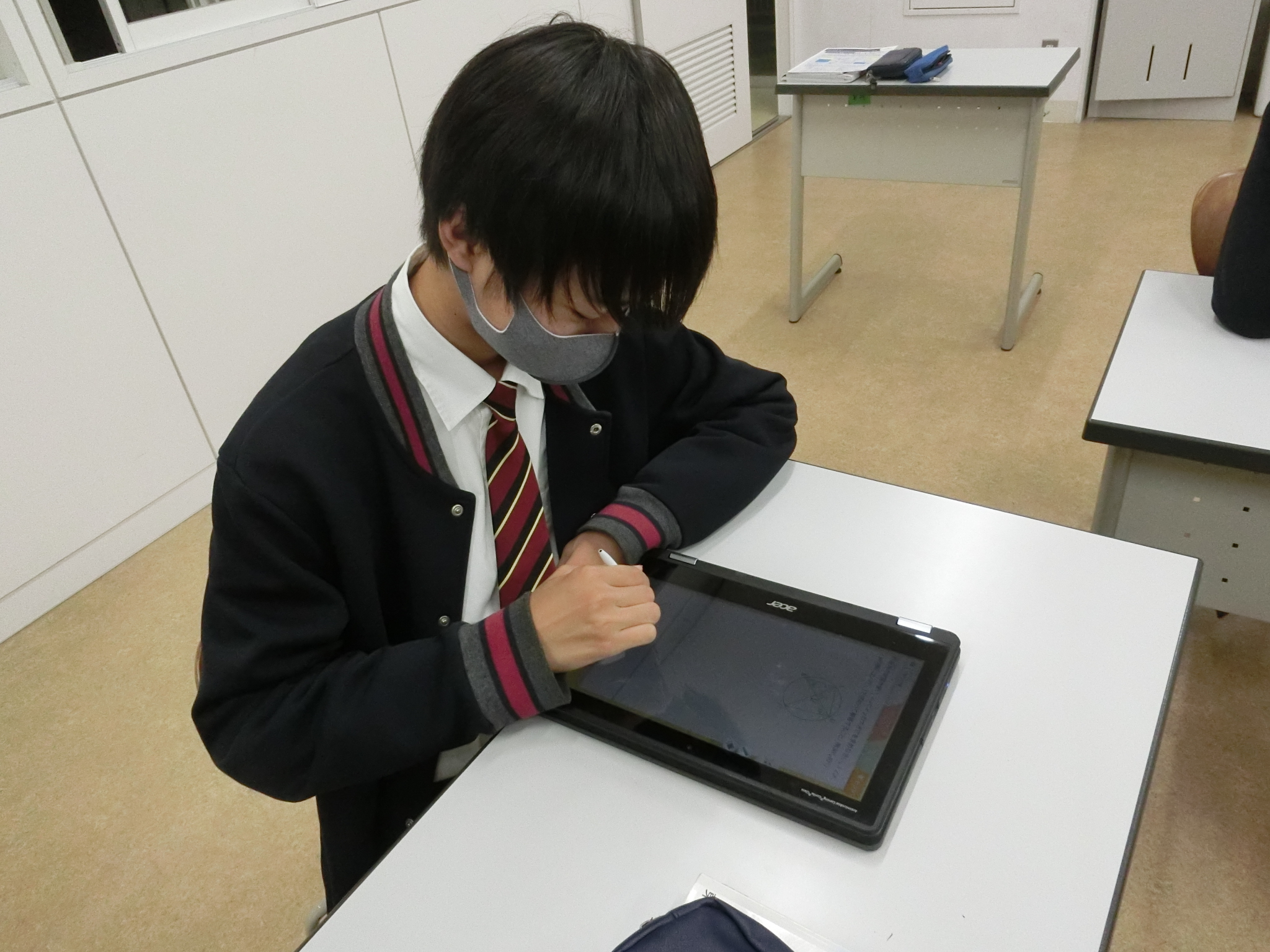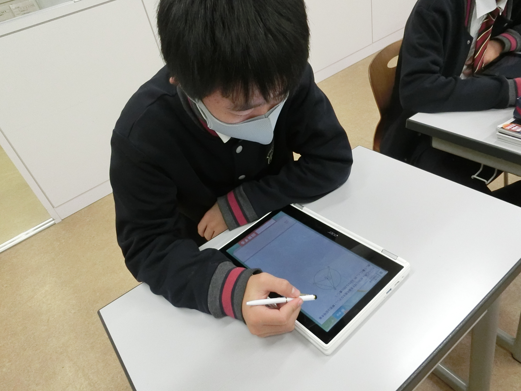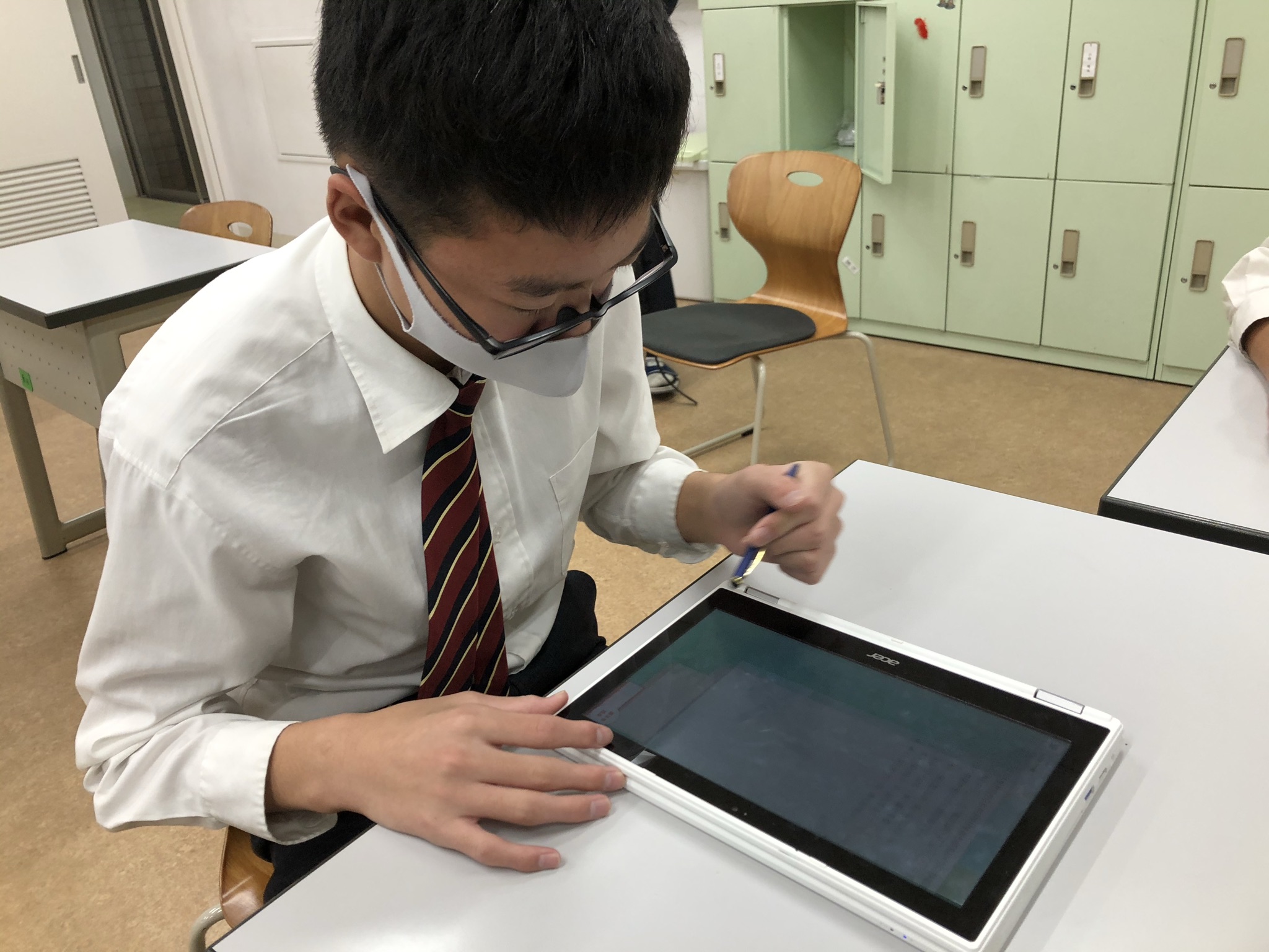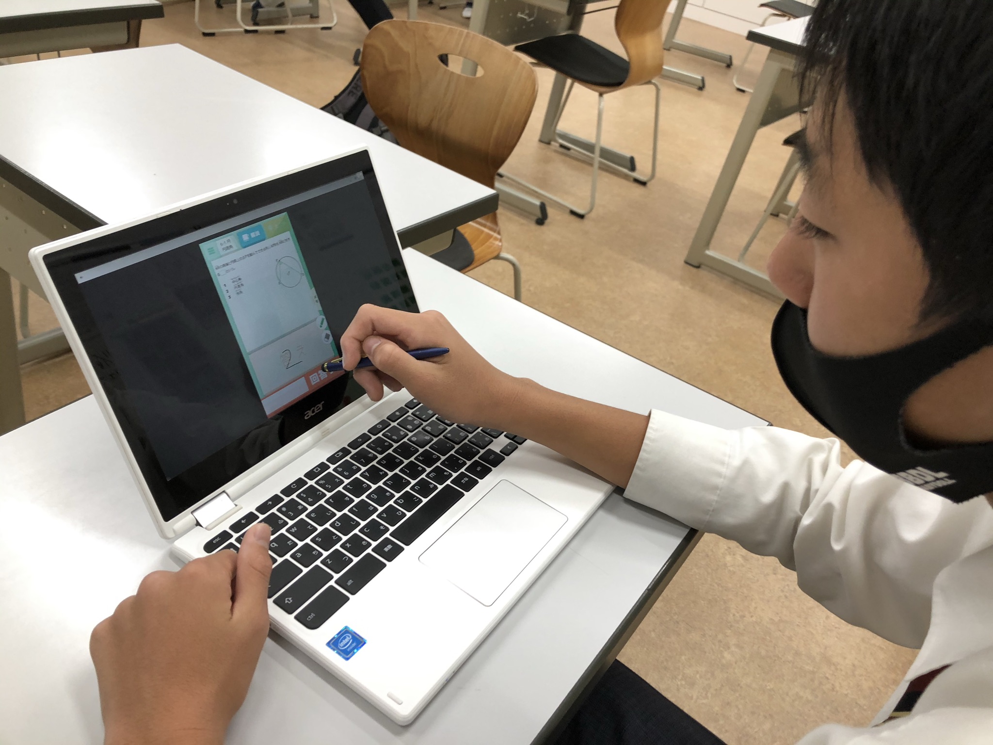 QubenaとはAI型タブレット教材です。本校では生徒一人ひとりChromebookを使って個別最適化された問題で、基礎から応用まで様々なレベルに応じた学習を行っています。