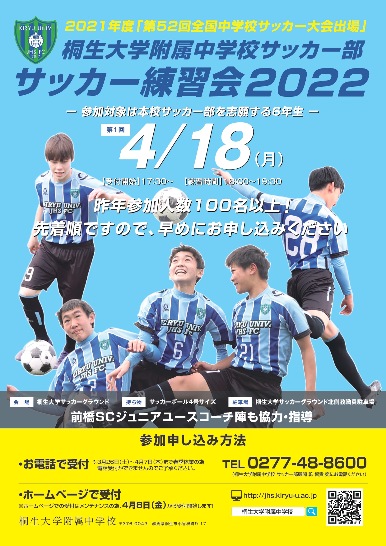 中学校で勉強とサッカーを両立させたい君、 夢の実現への第一歩を桐生第一中学校で挑戦してみませんか!
