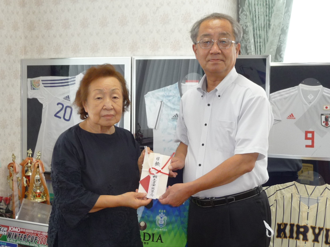 桐丘学園同窓会、同会長の小山様、副会長の久保田様より、本校サッカー部の功績を称えて50万円のご寄付を賜りましたことをご報告いたします。誠にありがとうございました。