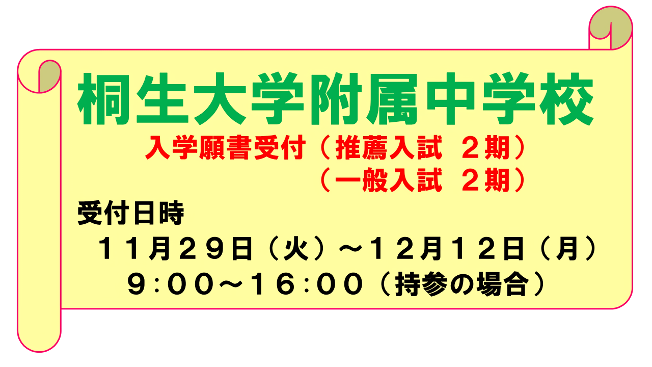 入学試験【一般入試2期】【推薦入試2期】出願を受付を終了しました。