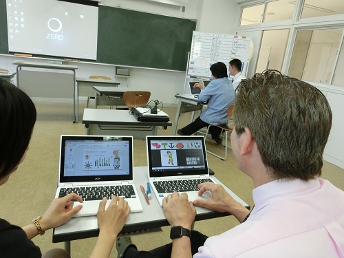 職員がペアを組んで、データをスプレッドシートに打ち込みグラフを作成